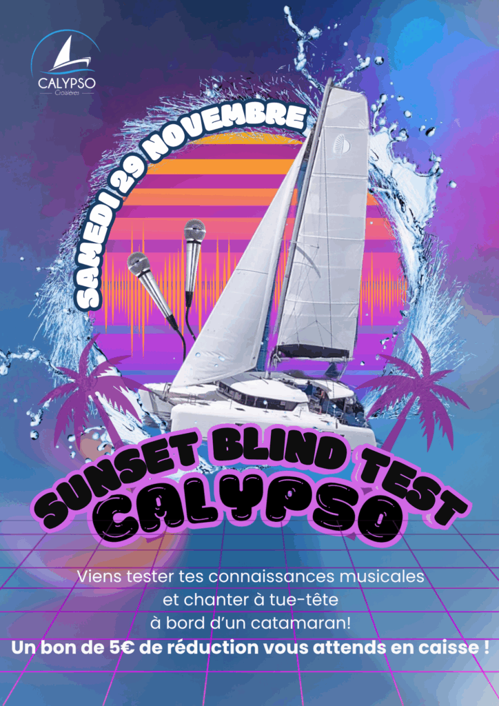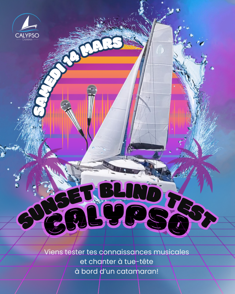 Suite au succès des couchers de soleil sur notre catamaran, où vous pouvez profiter du spectacle aux premières loges, ainsi que des événements privés que vous organisez à votre guise, Calypso Croisières vous propose désormais ses propres événements plusieurs fois par mois !